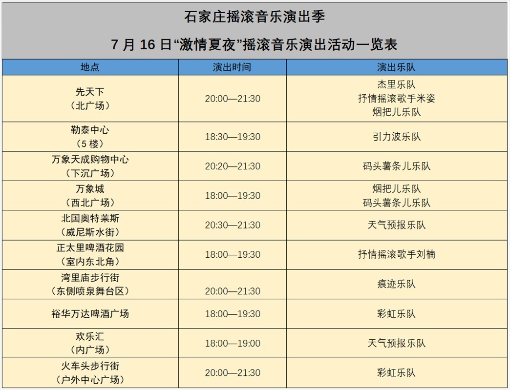 石家莊搖滾音樂演出季部分演出安排。