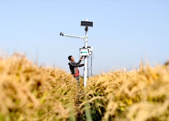 10月15日,樂亭縣數(shù)字循環(huán)現(xiàn)代農(nóng)業(yè)園區(qū)內,工作人員在調試監(jiān)測設備。(受訪單位供圖)