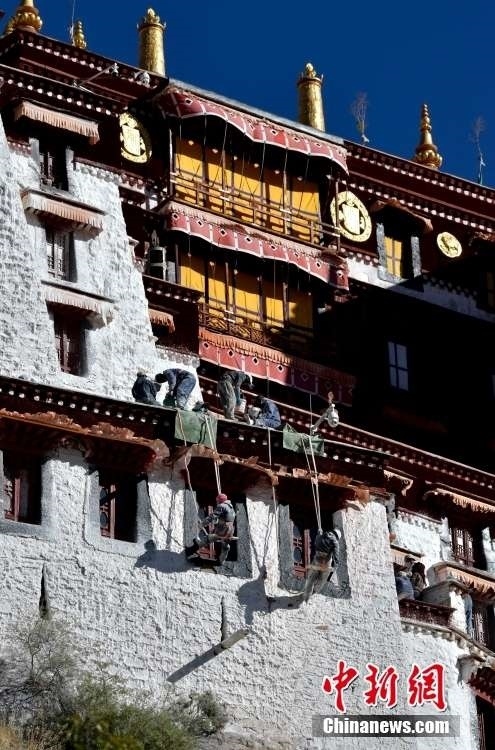 西藏布達(dá)拉宮迎年度粉刷