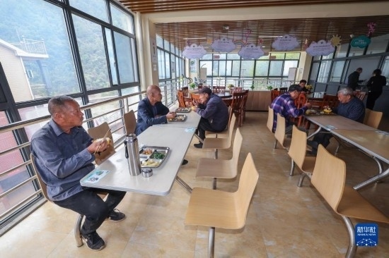 10月26日,老人們?cè)诤贾菔懈魂?yáng)區(qū)湖源鄉(xiāng)居家養(yǎng)老服務(wù)中心就餐。