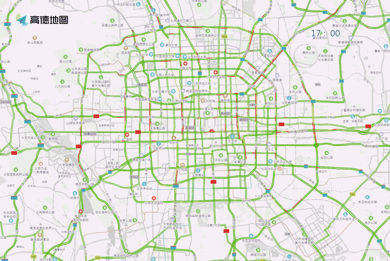 工作日早間至上午時(shí)段,預(yù)計(jì)兒研所、兒童醫(yī)院、北醫(yī)三院、北京醫(yī)院、同仁醫(yī)院、西苑醫(yī)院、積水潭醫(yī)院等醫(yī)院門前及周邊道路車流量較大,高峰時(shí)段預(yù)計(jì)為7至13時(shí)。
