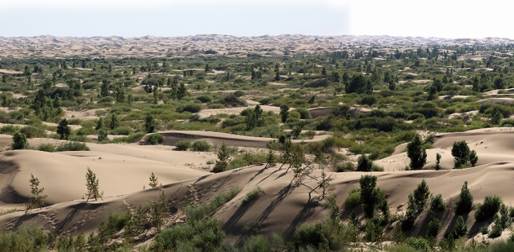 在挺進(jìn)騰格里沙漠的同時(shí),億利科技治沙的隊(duì)伍也進(jìn)入了新疆南疆的塔克拉瑪干沙漠區(qū)域,通過種植烏拉爾甘草、檸條、羊柴花棒、檉柳等10種先鋒植物、創(chuàng)新實(shí)踐苦咸水綜合治沙技術(shù)等,建設(shè)了30平方公里的灌喬草藥復(fù)合生態(tài)示范區(qū),建成了2萬畝的光伏-苦咸水低成本沙漠生態(tài)修復(fù)區(qū)?! ?/p>