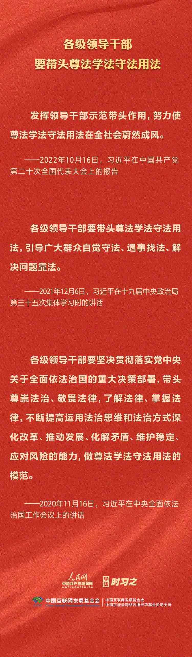 今年是貫徹落實黨的二十大精神的開局之年。中共中央政治局決定從今年4月開始,在全黨自上而下開展學習貫徹習近平新時代中國特色社會主義思想主題教育。習近平法治思想是習近平新時代中國特色社會主義思想的重要組成部分,人民網(wǎng)·中國共產(chǎn)黨新聞網(wǎng)推出學法時習之·學習習近平法治思想系列策劃,本篇聚焦“堅持抓住領導干部這個‘關鍵少數(shù)’”。