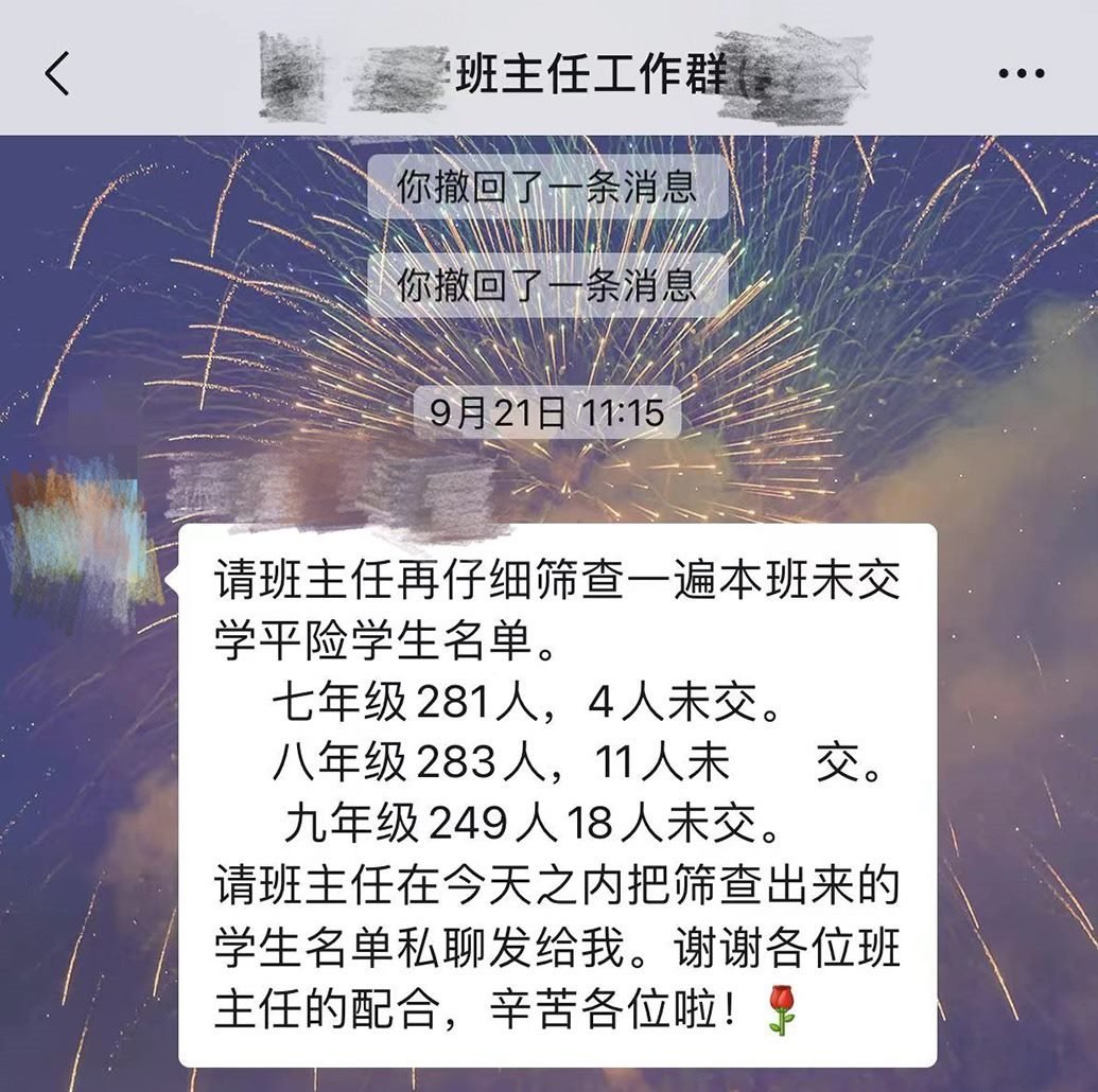 她要反復(fù)叮囑學(xué)生,同時在家長群一一驗收,“力求100%完成”。因為這些任務(wù)大多與她的績效掛鉤。但并非所有家長都愿意配合,因為需要確認(rèn)的通知太多,她還為此被家長告到教育局。