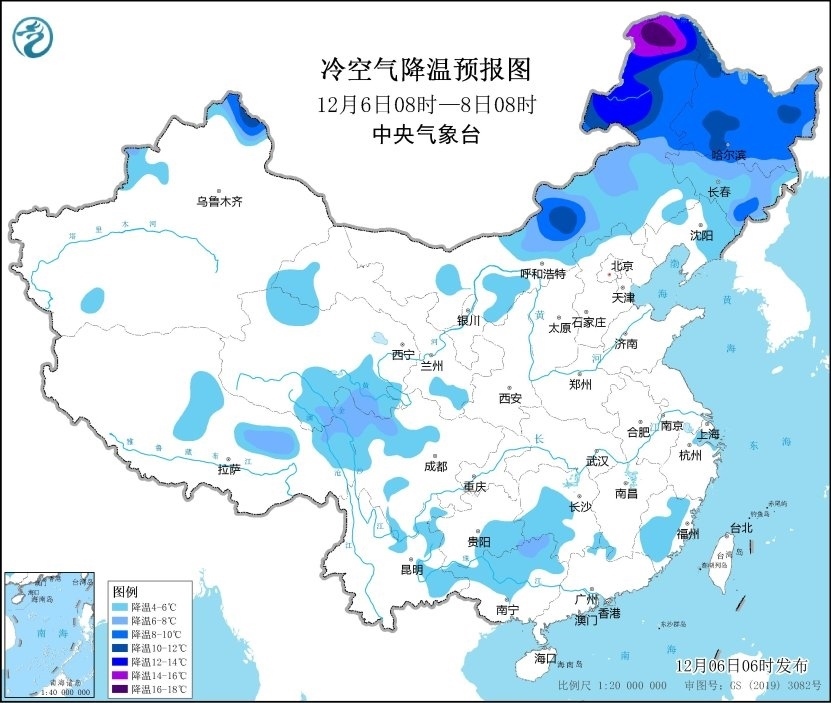 人民網(wǎng)北京12月6日電 (記者溫璐)據(jù)中央氣象臺網(wǎng)站消息,受較強冷空氣影響,昨日我國北方大部地區(qū)出現(xiàn)大風、沙塵和降溫天氣。大部地區(qū)陣風6~9級,部分地區(qū)風力超過10級,西北地區(qū)東部、華北及黃淮多地出現(xiàn)揚沙或浮塵,甘肅武威局地沙塵暴。今晨,內(nèi)蒙古中東部、山西北部、河北西北部及黑龍江西北部等地氣溫下降4~8℃,局地降幅超過10℃。
