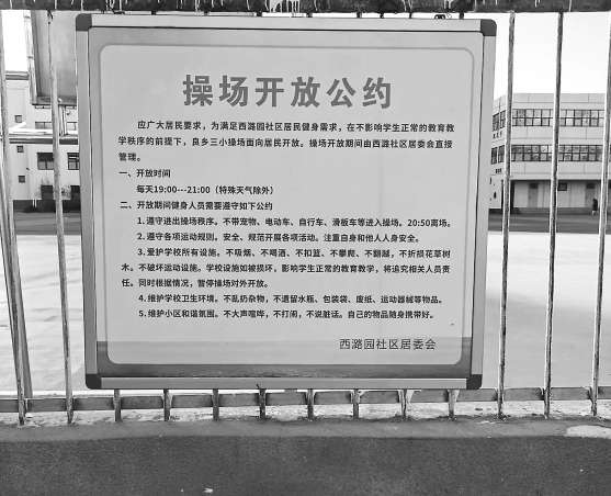 一個(gè)個(gè)難題得以解決,自今年夏天起,除了刮風(fēng)下雨等特殊天氣,包括周末在內(nèi),每天晚7時(shí)至9時(shí),操場(chǎng)都會(huì)面向居民開放,運(yùn)行至今近半年時(shí)間。
