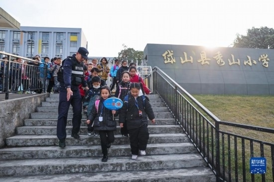 12月20日,秀山派出所民警在秀山小學(xué)放學(xué)時間參與“護(hù)學(xué)崗”維持秩序,同時接獨(dú)自放學(xué)的學(xué)生去“民生小鋪”。
