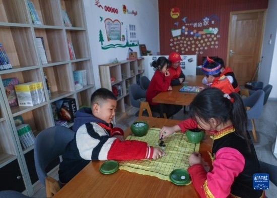 12月20日,秀山小學(xué)學(xué)生在“民生小鋪”等候家長時下棋。