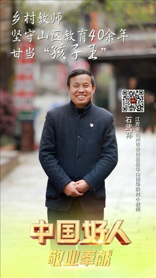 石武蓀,男,1962年5月生,中共黨員,江西省撫州市黎川縣原華山鎮(zhèn)華聯(lián)村小教師。參加工作40多年來,他扎根偏遠山區(qū),數(shù)次放棄進城機會,默默堅守在離縣城30多公里的大山里,把自己的青春年華無私地奉獻給了山區(qū)的百姓和孩子們。