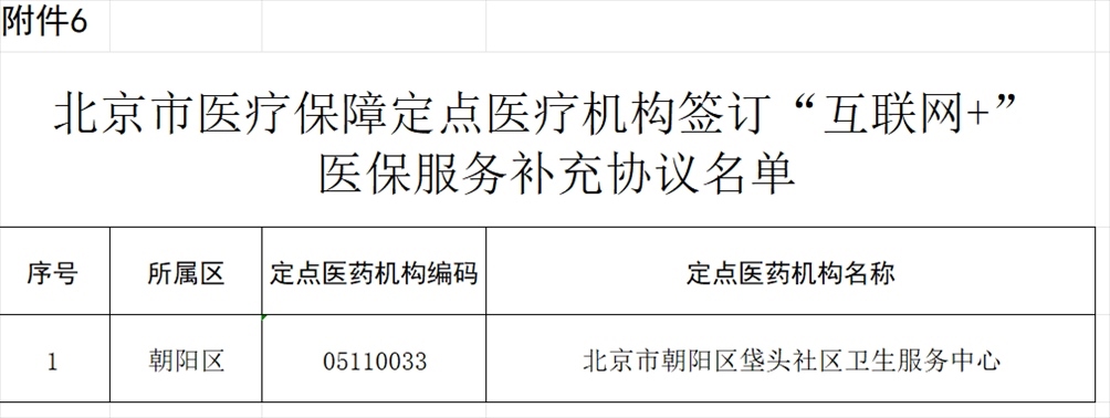 北京市朝陽區(qū)垡頭社區(qū)衛(wèi)生服務(wù)中心申請開展“互聯(lián)網(wǎng)+”醫(yī)保服務(wù),經(jīng)市、區(qū)醫(yī)保經(jīng)辦機(jī)構(gòu)審核并通過信息系統(tǒng)業(yè)務(wù)驗(yàn)收,該定點(diǎn)醫(yī)療機(jī)構(gòu)符合“互聯(lián)網(wǎng)+”醫(yī)保服務(wù)條件,簽訂《<北京市基本醫(yī)療保險(xiǎn)定點(diǎn)醫(yī)療機(jī)構(gòu)服務(wù)協(xié)議書>“互聯(lián)網(wǎng)+”醫(yī)保服務(wù)補(bǔ)充協(xié)議》,為參保人員提供北京市醫(yī)療保障“互聯(lián)網(wǎng)+”醫(yī)保服務(wù)(見附件6)。