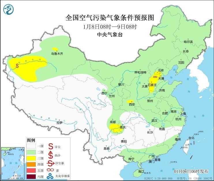 央視網(wǎng)消息:中央氣象臺6日6時繼續(xù)發(fā)布大霧黃色預(yù)警。此外,6日白天起,受冷空氣影響,黃淮南部、江淮北部等地的霾天氣逐漸減弱消散。