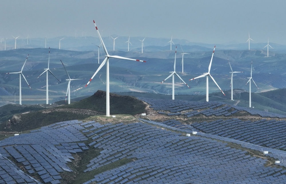 這是2023年9月2日拍攝的承德市豐寧滿族自治縣萬勝永鄉(xiāng)萬勝永村附近的一處風(fēng)光互補(bǔ)發(fā)電場(無人機(jī)照片)。新華社記者楊世堯 攝