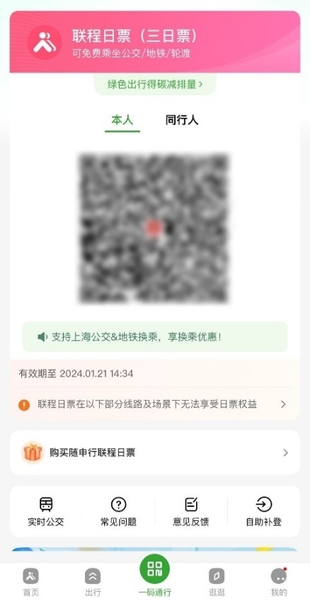 即日起,市民登錄上海市綠色出行一體化平臺“隨申行”APP,購買并啟用“聯(lián)程日票”,即可在有效時(shí)間內(nèi)不限次乘坐上海地鐵、公交和輪渡。老人、小孩同行時(shí),支持為同行人購買聯(lián)程日票。