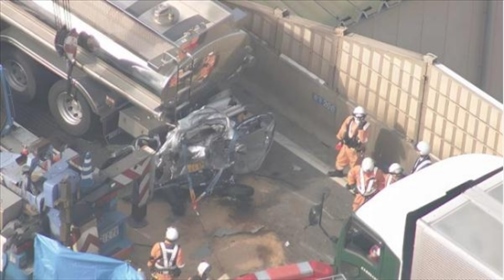 ·日本高速發(fā)生連撞事故,一轎車被擠壓至30厘米厚,車內(nèi)一對70余歲夫婦當場死亡。