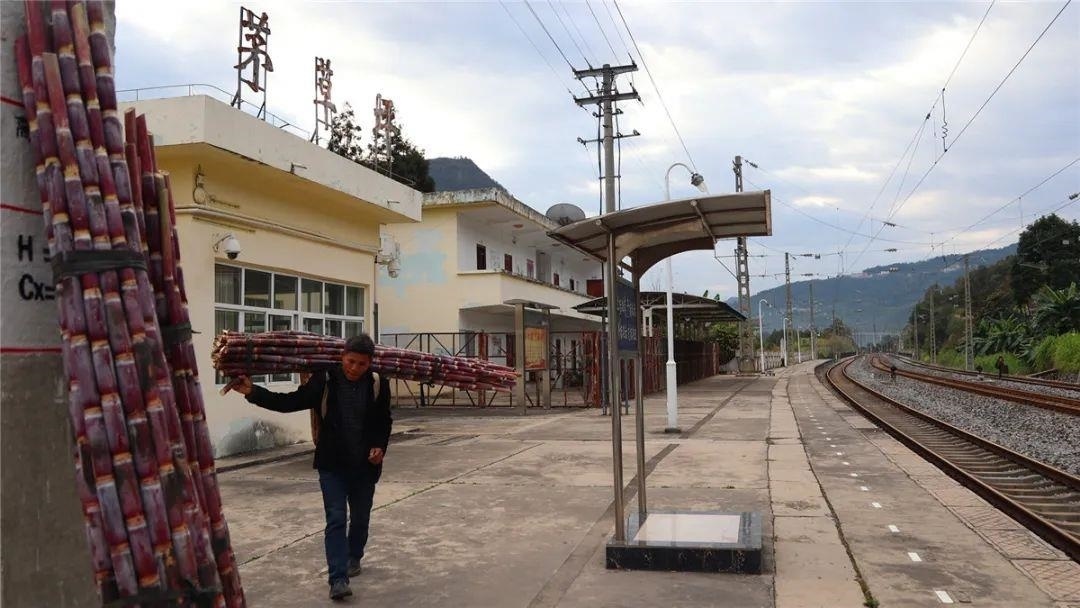 3月2日一大早,小小的茅草坪站就坐滿了背著農(nóng)產(chǎn)品前來乘坐“慢火車”的群眾。蔗農(nóng)李進賢準備從茅草坪站乘坐6081次慢火車給在松河的客戶送甘蔗。