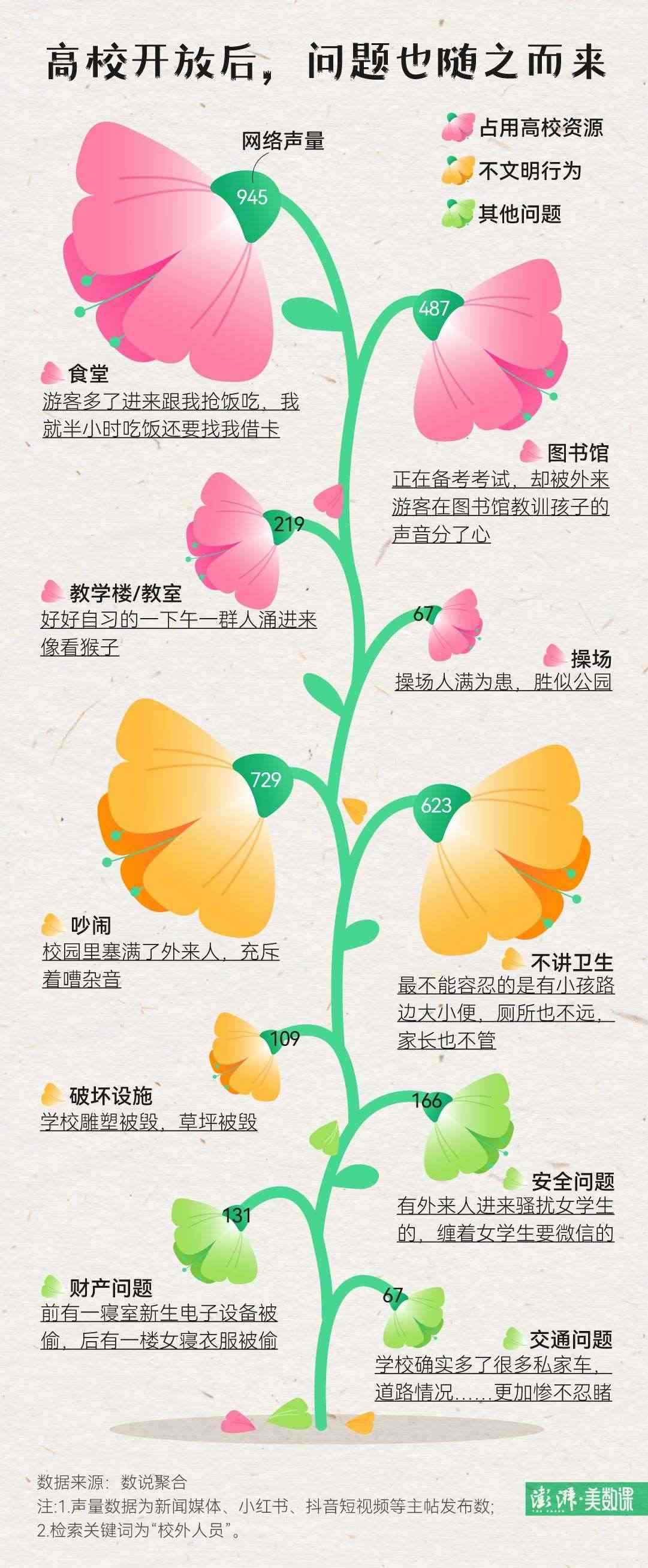 在今年 3 月 中旬,游客和學(xué)生發(fā)生沖突后,武漢大學(xué)官方發(fā)布聲明,表示將嚴(yán)厲打擊外來(lái)人員(車輛)違規(guī)入校的情況。中國(guó)礦業(yè)大學(xué)也對(duì)學(xué)生反映的部分訪客不文明行為給予回應(yīng),將拒不配合校園管理的校外人士列入管控名單,并取消其入校資格。