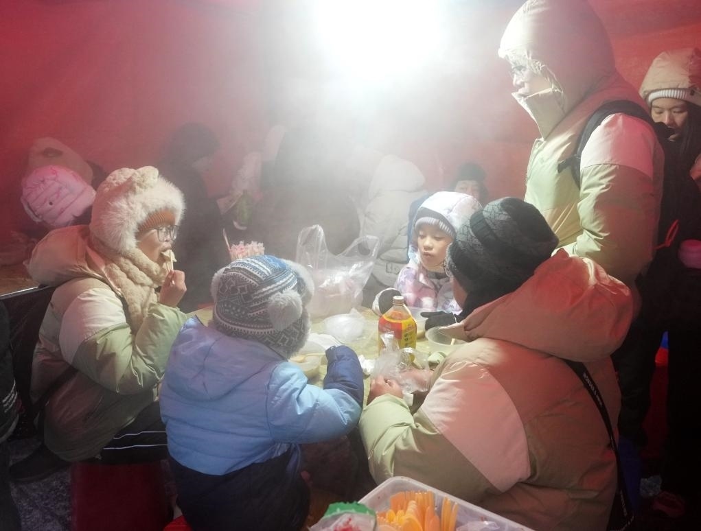 2024年1月,在哈爾濱紅專街早市,來自廣州的游客在品嘗粘豆包(1月22日攝)。 新華社記者 王毓國 攝