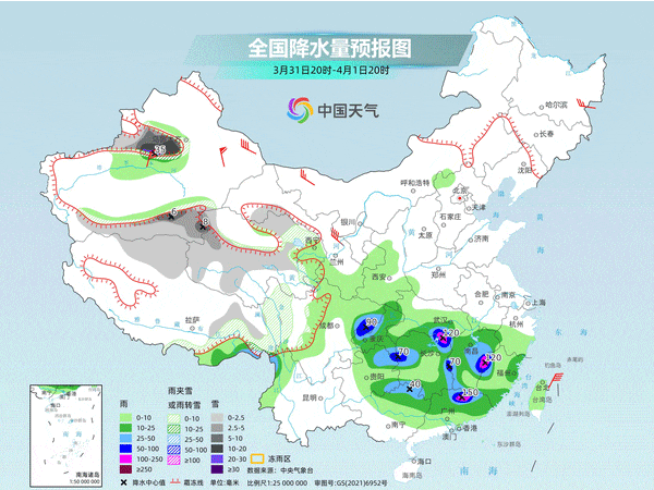 下周,南方天氣的還有一個關(guān)鍵詞是降雨。兩輪降雨過程接連來襲,分別會出現(xiàn)在4月1-3日、4-6日,降雨的同時強(qiáng)對流天氣多發(fā)。
