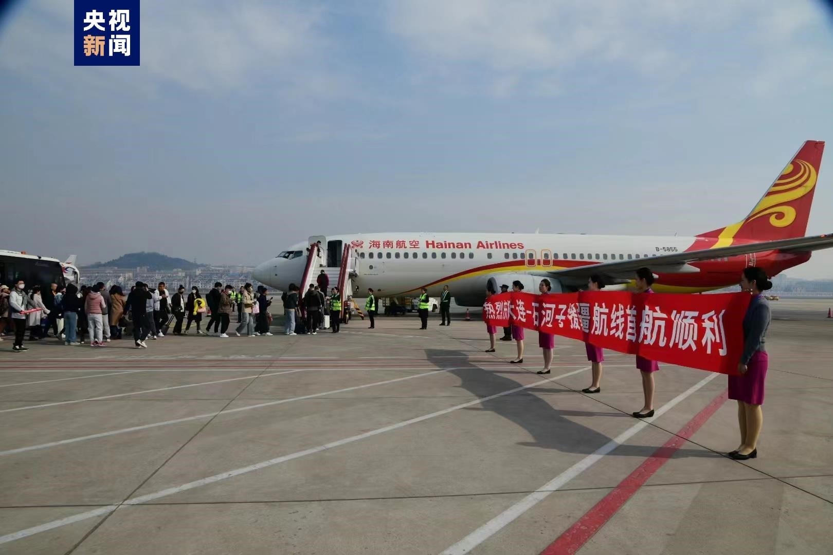 該航線由海南航空波音737-800機(jī)型執(zhí)飛,每周3班。新航線的開通是繼宜昌之后,大連機(jī)場開通的第二條對(duì)口支援航線。(總臺(tái)記者 賈鐵生)