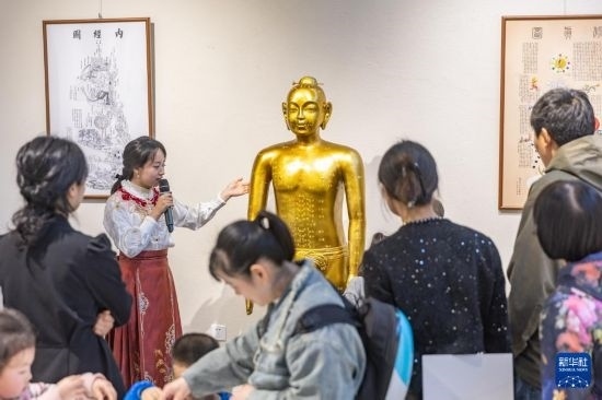 4月6日,醫(yī)生志愿者在“百草創(chuàng)藝”中醫(yī)藥藝術(shù)作品展現(xiàn)場為觀眾講解中醫(yī)藥文化知識(shí)。