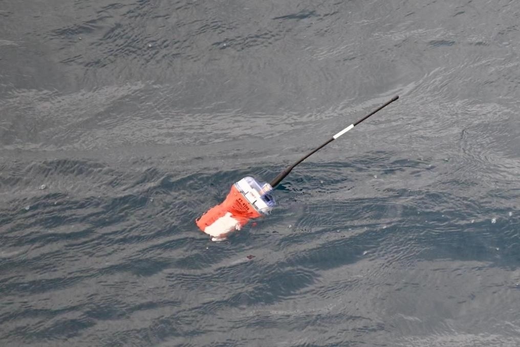 交通運(yùn)輸部南海救助局南海第二救助飛行隊(duì)“B-7358”4月3日在現(xiàn)場(chǎng)找到事故漁船的衛(wèi)星緊急無(wú)線電示位標(biāo)。(海南省海上搜救中心供圖)