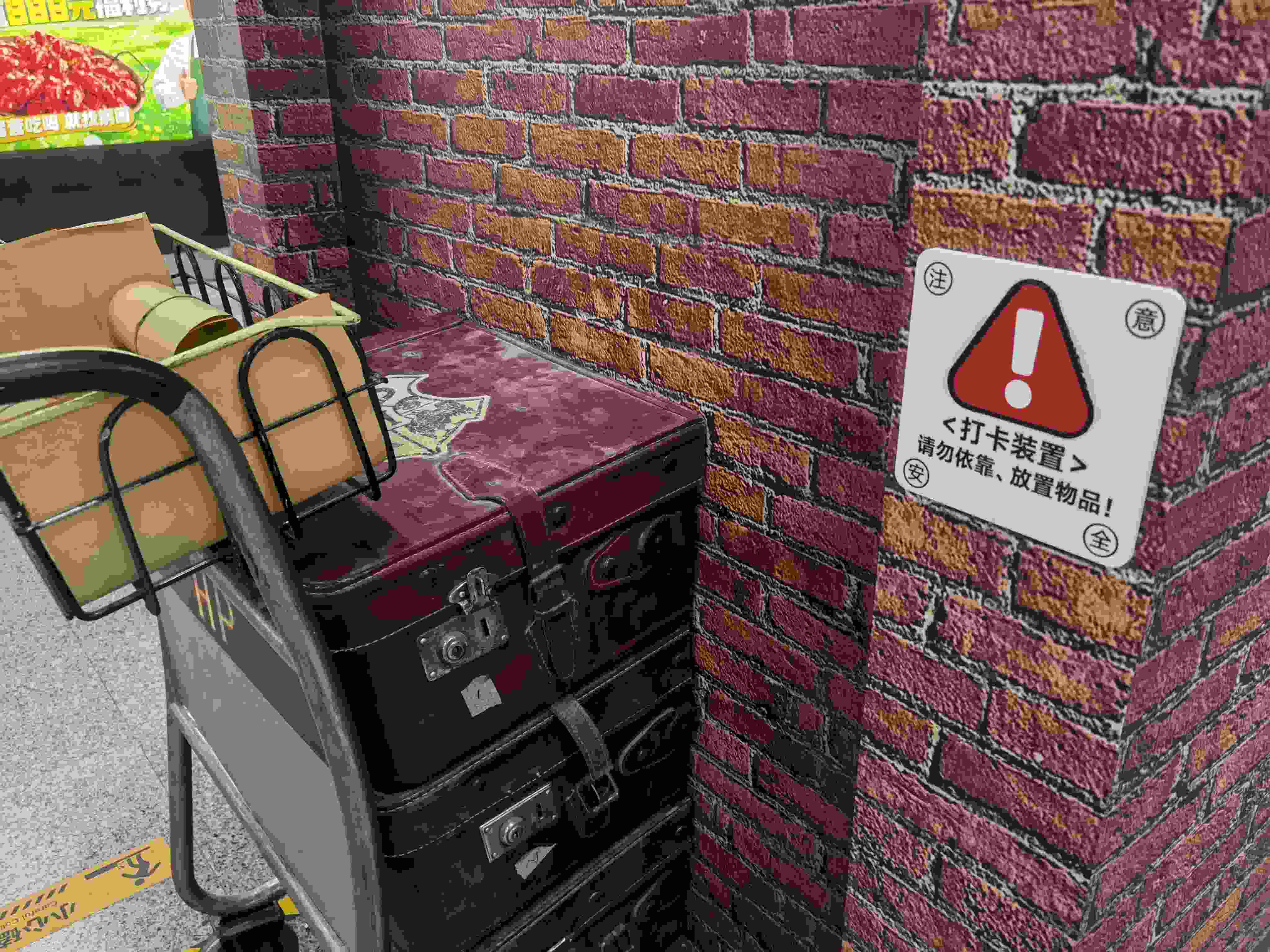 “北京也有9 站臺了!還有誰沒去打卡?”4月9日,在不少社交平臺,這處新加裝的“哈利·波特”主題景觀裝飾墻火了。4月9日下午,記者在地鐵4號線北京大學(xué)東門站的站臺上看到,站臺中間被裝飾成了《哈利·波特》經(jīng)典場景9 站臺的樣子。在站臺中間過道處,每一根立柱都被紅磚樣式的海報包裹。最中間的兩根立柱前,分別放置了一輛和電影中一樣“隱沒”在墻里的行李車,車上有3個紅色的小皮箱和一筐黃色的紙卷軸,給整個地鐵站營造出一種復(fù)古的魔法風(fēng),吸引了不少乘客圍觀拍照。