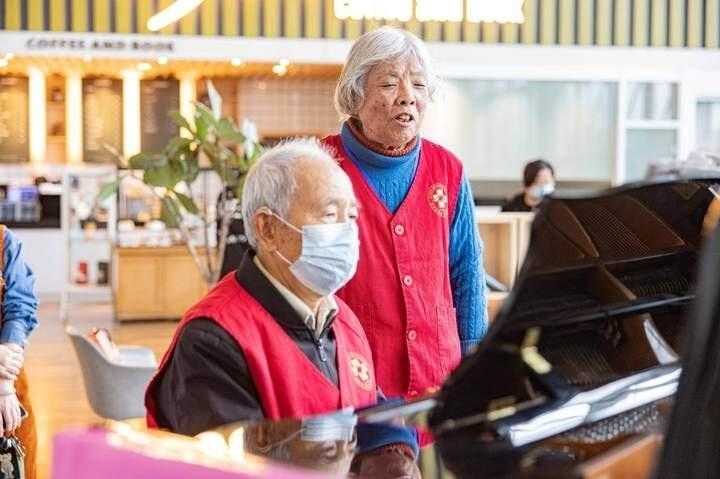 老人名叫葉明倫,是當(dāng)?shù)芈窐蛐W(xué)的退休教師,也是臺(tái)州恩澤醫(yī)院“音樂(lè)療吧”的鋼琴志愿者,今年已有85歲。每周一上午,他都會(huì)乘坐公交車,從5公里外的家中趕到醫(yī)院,為患者們義務(wù)彈鋼琴。