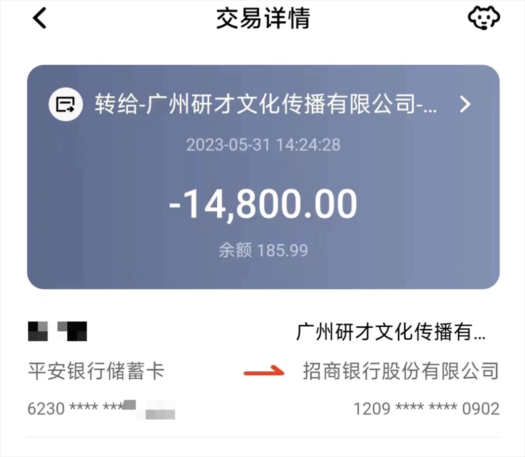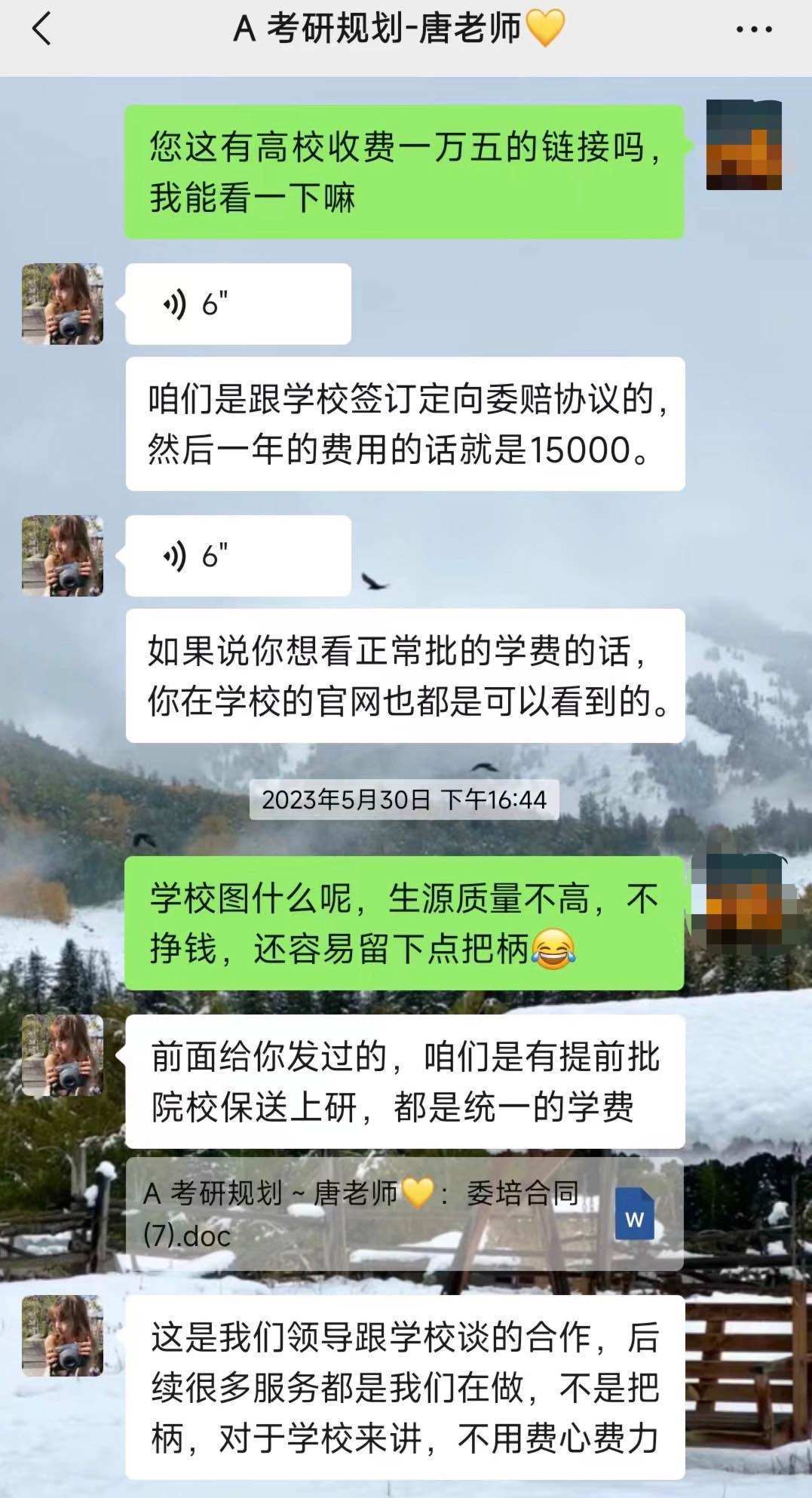 來自北京的陳鑫(化名)說,他被上述話術(shù)吸引,去年5月報(bào)了廣州研才教育機(jī)構(gòu)的“院校推免保送研究生課程”。咨詢時,招生老師向他承諾“渠道直錄,考研保過”,并稱還能通過“院校委培”的方式,幫他把20萬元左右的MBA學(xué)費(fèi)降為1.5萬元。