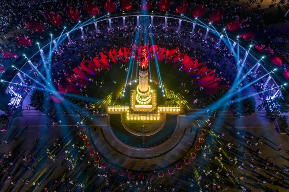 夜幕降臨,哈爾濱防洪勝利紀念塔廣場格外絢麗,萬眾期待的松花江光影秀準時上演。聲、光、電交織舞動,以防洪紀念塔為中心,隔江呼應著太陽島,每一次光影的變化都映射出這座城市獨特的文化意象。