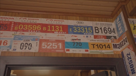 每次跑完馬拉松,羅書堅(jiān)都會(huì)把號(hào)碼牌貼在墻上,那是他激勵(lì)自己的一種特殊方式。