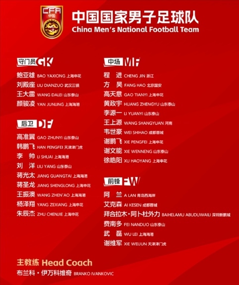 ·國(guó)足公布6月世預(yù)賽大名單。