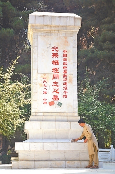 一名巴基斯坦人在吉爾吉特中國烈士陵園參觀瞻仰。本報巴基斯坦分社 賽義德·邁赫迪攝