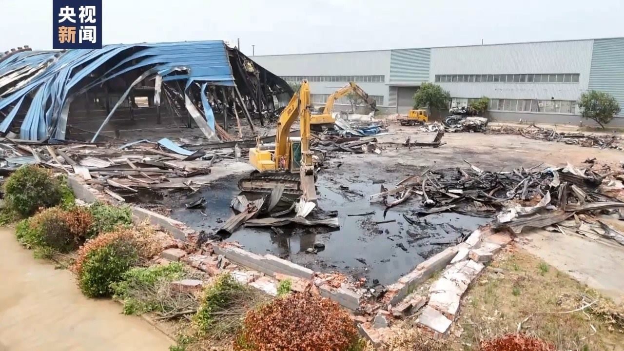 5月25日晚上7點(diǎn)多,總臺(tái)記者按照知情人的指引,趕往富信石油倉(cāng)庫(kù)所在地,全椒經(jīng)開區(qū)經(jīng)二路東側(cè)的三期標(biāo)準(zhǔn)化廠房調(diào)查。此處共有6棟廠房,占地42畝,于2012年建成,廠房歸全椒百盛金屬科技有限公司所有,現(xiàn)租賃給當(dāng)?shù)厮募移髽I(yè)使用。發(fā)生火災(zāi)的2號(hào)廠房,目前已被部分拆解。環(huán)境監(jiān)測(cè)人員正在現(xiàn)場(chǎng)提取污水樣本。一旁的庫(kù)房?jī)?nèi)仍然堆積了許多裝滿不明液體的塑料桶??諝庵袕浡瘫堑幕瘜W(xué)品氣味。