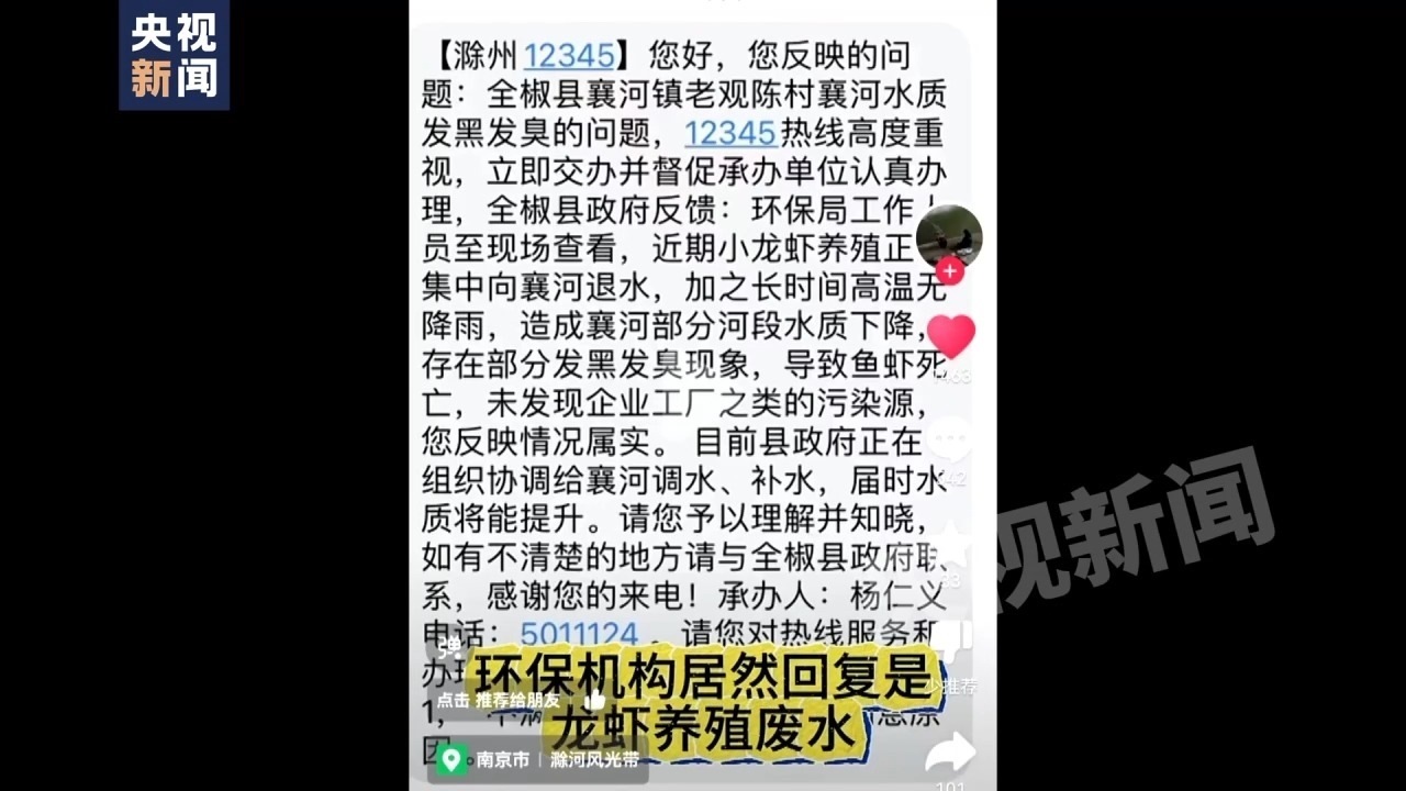 本次污染事件不僅造成滁河南京段大量魚蝦死亡,也導(dǎo)致全椒境內(nèi)養(yǎng)殖龍蝦大面積死亡,給養(yǎng)殖戶們帶來(lái)巨大損失。一些群眾通過(guò)滁州市12345反映,自稱沒(méi)有參與過(guò)問(wèn)題處理的工作人員卻成了“承辦人”。