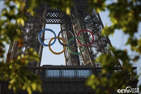 當(dāng)?shù)貢r(shí)間2024年6月7日,在巴黎奧運(yùn)會(huì)開(kāi)幕倒計(jì)時(shí)50天之際,奧運(yùn)五環(huán)被安裝在巴黎埃菲爾鐵塔上。