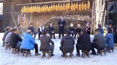 圖為法官組織院壩嘎歌會(huì),助力完善“榔規(guī)榔約”。