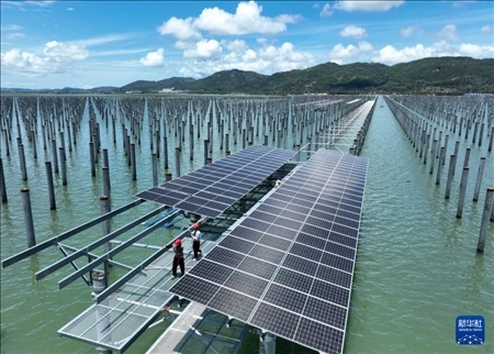 三峽集團東山杏陳180MW海上光伏電站位于福建省東山縣杏陳鎮(zhèn)、前樓鎮(zhèn)海域,這里日照長、風速大,屬于抗臺型潮汐帶海上光伏項目。該項目采用上部光伏發(fā)電與下部海域漁業(yè)養(yǎng)殖相結(jié)合的模式,實現(xiàn)海域立體綜合開發(fā)。