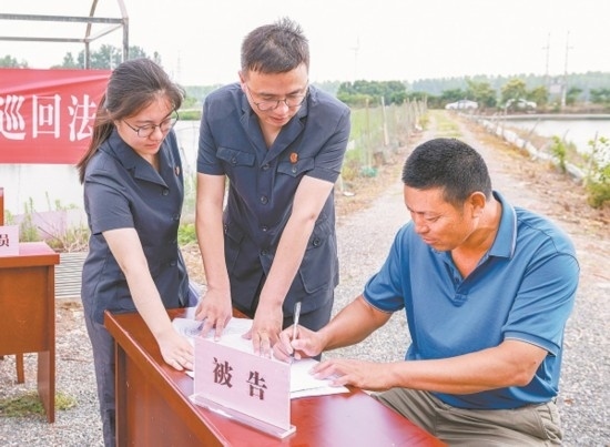 近日,安徽省天長市人民法院秦欄人民法庭法官來到東風(fēng)村螃蟹養(yǎng)殖基地,公開開庭審理一起農(nóng)業(yè)承包合同糾紛案。法官經(jīng)過現(xiàn)場勘查、細(xì)心調(diào)解,當(dāng)場化解糾紛,養(yǎng)殖戶投放的500斤蟹苗有了著落,村委會(huì)減少了經(jīng)濟(jì)損失。