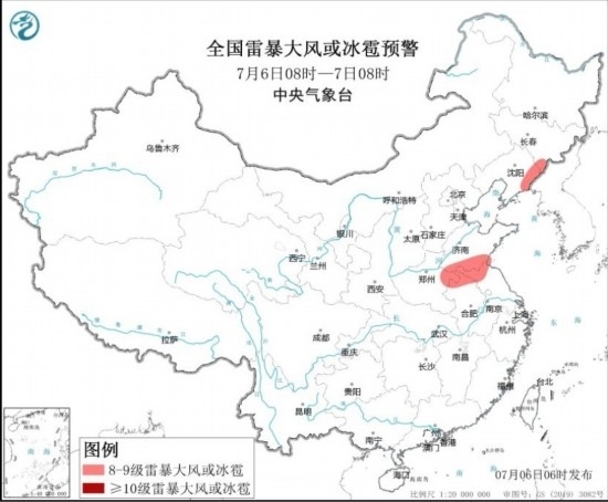 全國雷暴大風或冰雹預(yù)警(7月6日08時-7日08時) 圖源:中央氣象臺網(wǎng)站