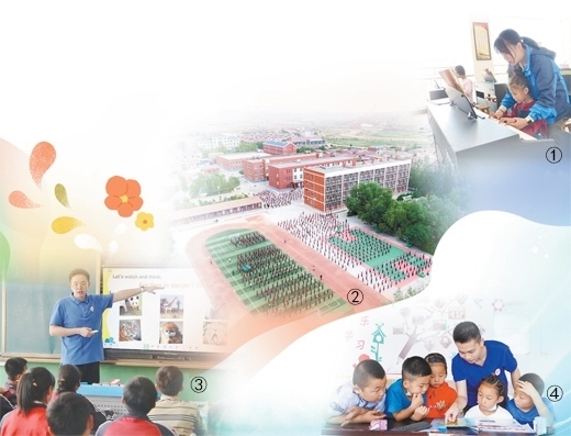 圖①:潘苑給孩子們上鋼琴課。 受訪者供圖 圖②:海原縣關橋中學全貌。林宇陽攝(人民視覺) 圖③:唐曉宇給學生們上英語課。 受訪者供圖 圖④:林宇陽和學生們在一起。蔣逢洲攝(人民視覺)