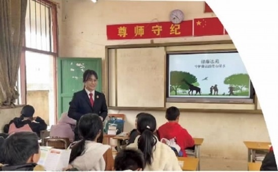 藤縣法院法官向?qū)W生講解環(huán)保法律知識(shí)。