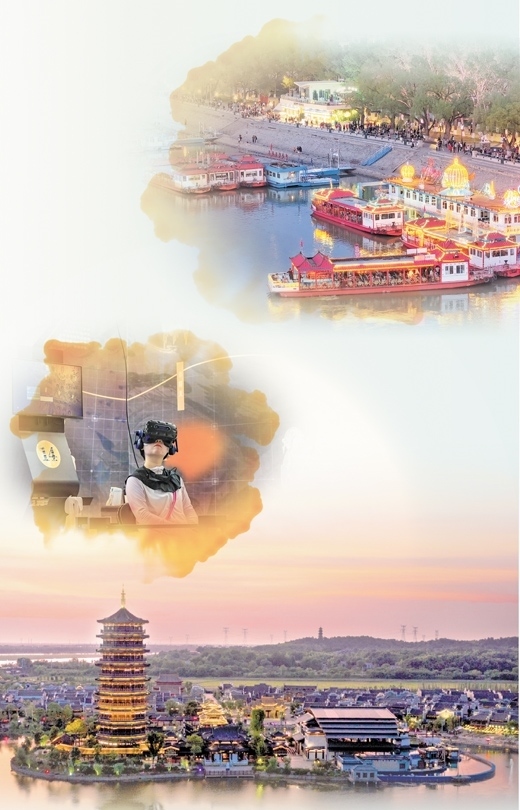 上圖:哈爾濱松花江畔,燈火璀璨、人流如織。施 覺攝 中圖:“尋境敦煌——數(shù)字敦煌沉浸展”中,游客借助VR設(shè)備游覽莫高窟。新華社記者 郎兵兵攝 下圖:晚霞映襯下的長(zhǎng)沙銅官窯古鎮(zhèn)。長(zhǎng)沙銅官窯文化旅游度假區(qū)供圖