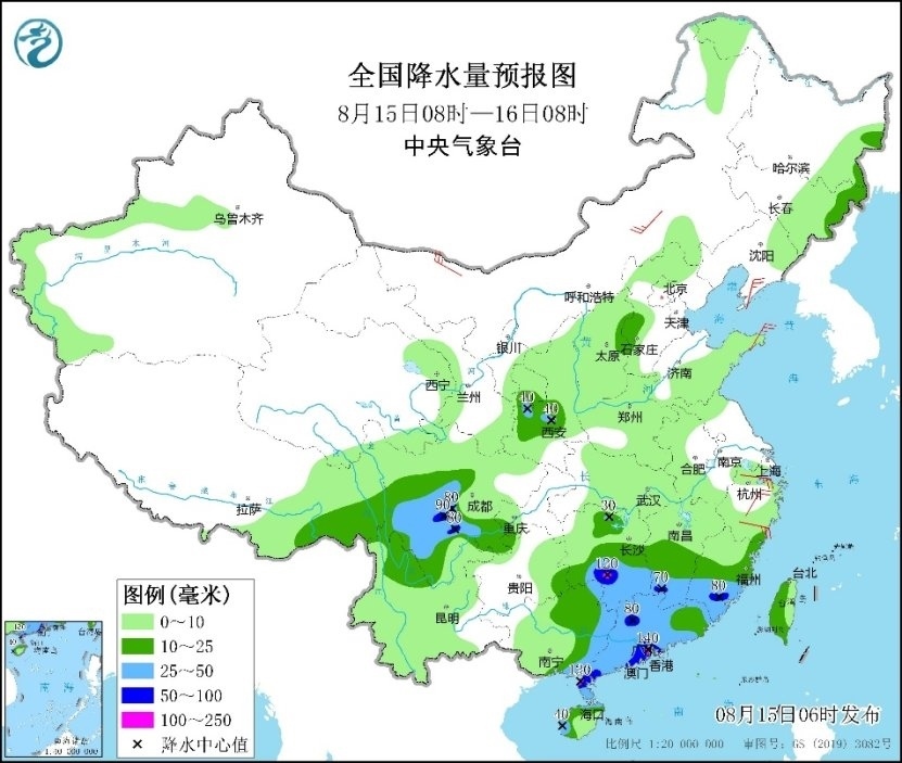 未來三天,江南南部、華南及四川盆地等地部分地區(qū)有分散性強降雨,并伴有強對流天氣,降雨強度大;西北地區(qū)東部、內(nèi)蒙古、華北、東北地區(qū)、黃淮等地有一次降雨過程,青海、甘肅、寧夏、陜西等地部分地區(qū)已出現(xiàn)較強降雨,需防范持續(xù)降雨和局地短時強降雨可能引發(fā)的次生災(zāi)害。由于副熱帶高壓減弱和降雨鋪展,高溫明顯減弱。高溫主要集中在四川盆地,湖北、湖南、浙江、江蘇等地雖有高溫,但范圍較小。