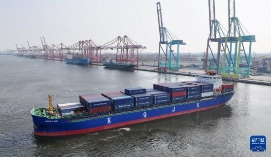 當(dāng)日,隨著“康琦嘉鴻”輪從天津港第二集裝箱碼頭鳴笛啟航,標(biāo)志著天津港開通至東南亞地區(qū)新航線。新開通的航線共投入3艘1100標(biāo)箱(TEU)型集裝箱船舶,為我國(guó)北方地區(qū)提供了又一條直航東南亞的海運(yùn)物流新通道。