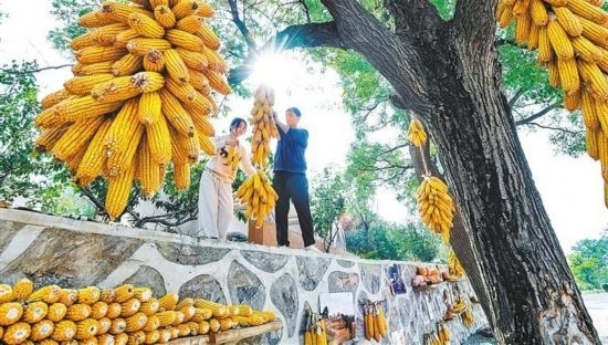 10月14日,河北省石家莊市鹿泉區(qū)段莊村舉辦曬秋民俗活動(dòng),吸引游客參與,同享秋日豐收時(shí)光。張曉峰攝(中經(jīng)視覺(jué))