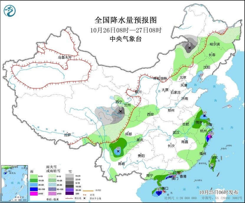 預(yù)計(jì)10月26日,江蘇中南部、安徽東南部、上海大部、浙江東部、廣東西南部沿海、海南島、臺(tái)灣島大部等地部分地區(qū)有中到大雨,其中,江蘇中部、浙江東部沿海、廣東西南部沿海、海南等地部分地區(qū)有暴雨或大暴雨。