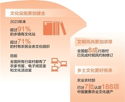 新時代以來,各地區(qū)各部門深入推進農(nóng)村精神文明建設。加快完善鄉(xiāng)村文化設施,健全農(nóng)村公共文化體系,農(nóng)家書屋、鄉(xiāng)村文化禮堂等打通文化惠民“最后一公里”;發(fā)展群眾性文體活動,廣泛開展“村BA”“村超”“村晚”等,豐富鄉(xiāng)村精神文化生活,展現(xiàn)鄉(xiāng)親們積極向上的精氣神;培育挖掘鄉(xiāng)土文化人才,引導文化工作者、科普工作者、文化志愿者等投身鄉(xiāng)村文化建設;賡續(xù)鄉(xiāng)村優(yōu)秀傳統(tǒng)文化,把對非遺的保護傳承和開發(fā)利用有機結合,將藝術與古村落、古民居的活化利用有機結合;持續(xù)推進農(nóng)村移風易俗,革除高價彩禮、人情攀比、厚葬薄養(yǎng)、鋪張浪費等陳規(guī)陋習,反對迷信活動,推動形成文明鄉(xiāng)風、良好家風、淳樸民風;健全鄉(xiāng)村治理體系,有效發(fā)揮村規(guī)民約作用,推廣文明積分等方式,激勵農(nóng)民自覺踐行文明新風……這些舉措為加強農(nóng)村精神文明建設提供了有力抓手,推動現(xiàn)代文明理念融入鄉(xiāng)村生活方方面面,為推進鄉(xiāng)村全面振興注入新動能。
