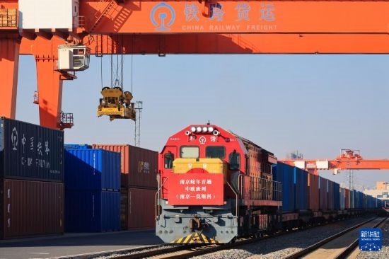 當日是農歷大年初一,一列滿載110標箱紡織品、汽車配件、電子機械設備等貨物的中歐班列從南京鐵路物流中心堯化門站貨場啟程,開往俄羅斯莫斯科。這是農歷新年南京開出的首趟中歐班列。