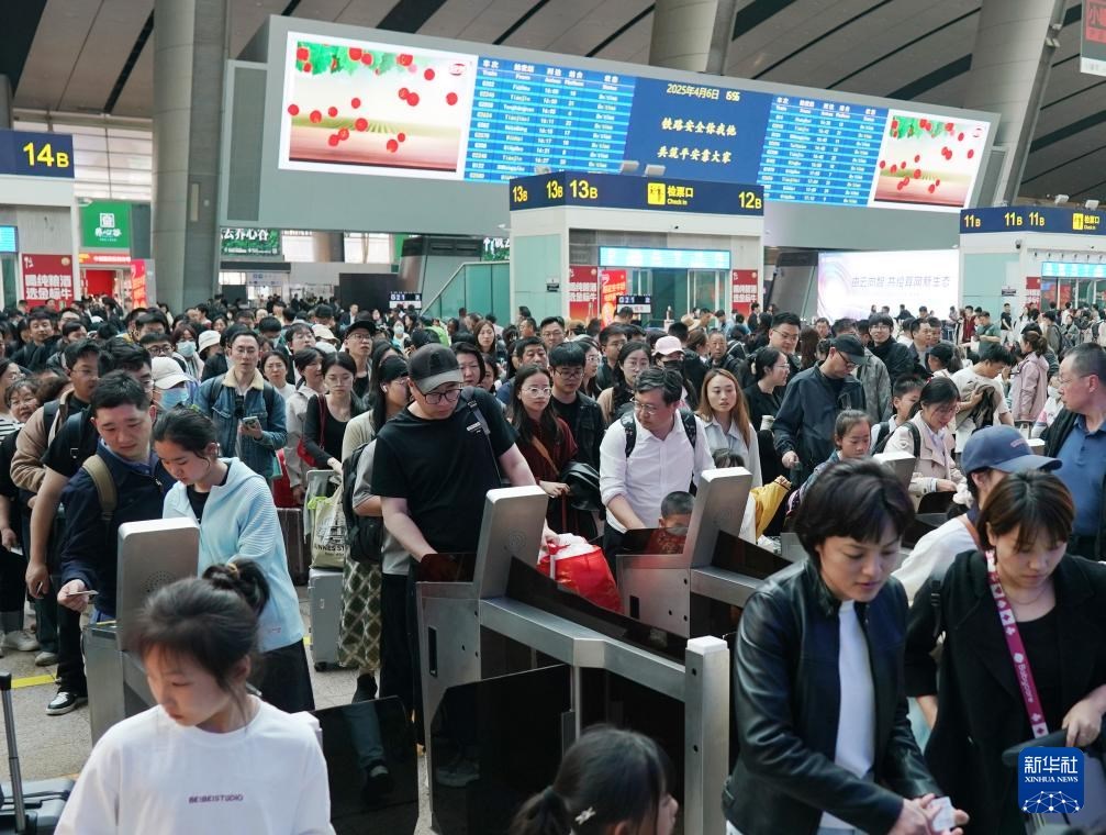 圖為4月6日,旅客在北京南站檢票乘車。