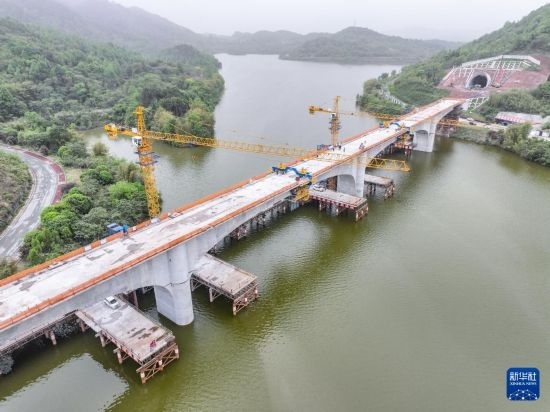 這是4月12日拍攝的合龍后的成渝中線高鐵玄天湖雙線大橋。